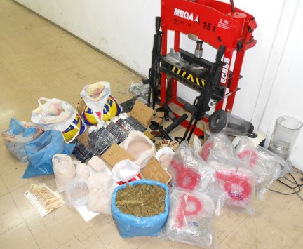 κάνναβη 6.125 γραμμ., άγνωστη σκόνη 4.815 γραμμ., δύο καλάσνικοφ με δύο